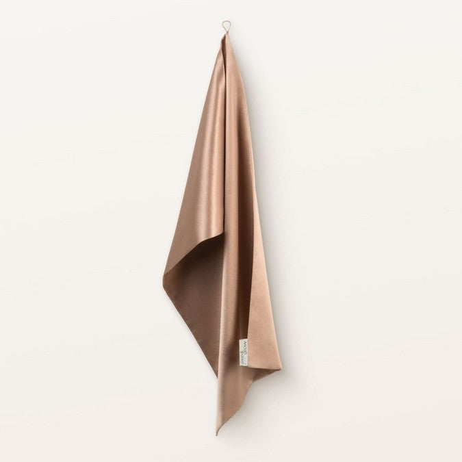 Håndkleet absorberer skånsomt overflødig fuktighet og bidrar til å bevare hudens naturlige pH-balanse takket være silkens naturlige egenskaper.